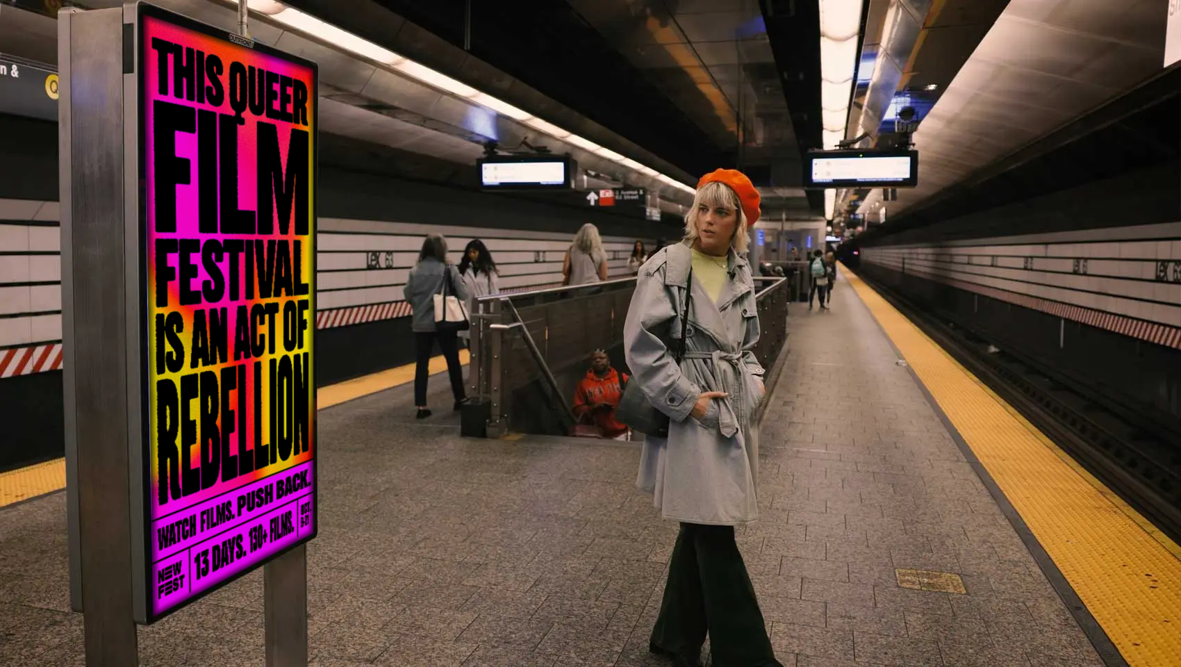 NewFest is the nation’s largest LGBTQ+ film festival and while the festival itself hasn’t changed much in recent years, the world in which it exists has. The past year alone has brought a barrage of anti-queer rhetoric, proposals to strip back queer rights, and attacks on queer art. That’s where Albert Camus “The only way to deal with an unfree world is to become so absolutely free that your very existence is an act of rebellion.” becomes a creative platform that turns every part of NewFest, every ticket, every film, every moment, into a bold act of protest.